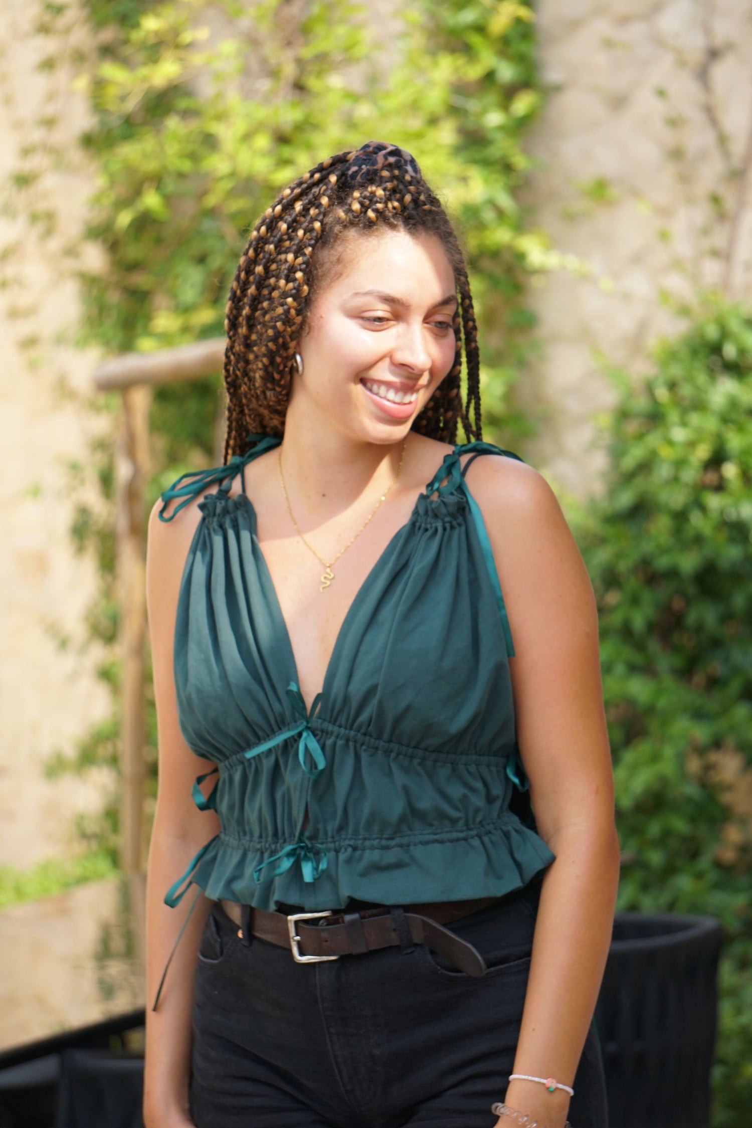 "The production in Germany ensures fair & ethical manufacturing. Natural materials are used, all of which are OEKO-TEX certified. All cuts are optimized so that there are no or hardly any fabric scraps. The few fabric scraps are processed into scrunchies and jewelry #zerowaste"
